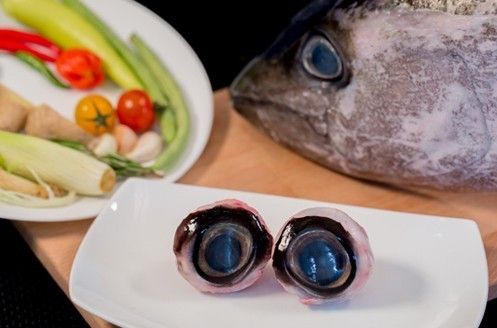 Tuna eyes. It sounds rather unusual, but the cooked eyes taste like a squid or octopus. And they make big eyeballs in Japan. They are usually stewed in soy sauce.